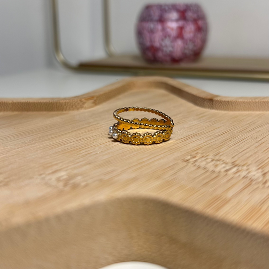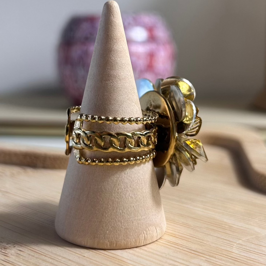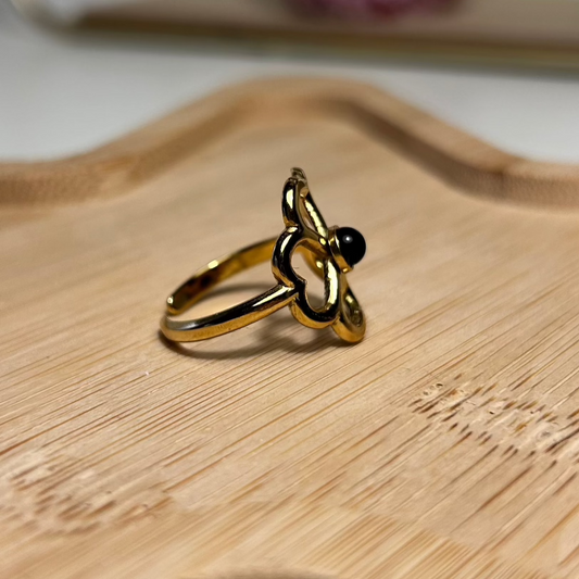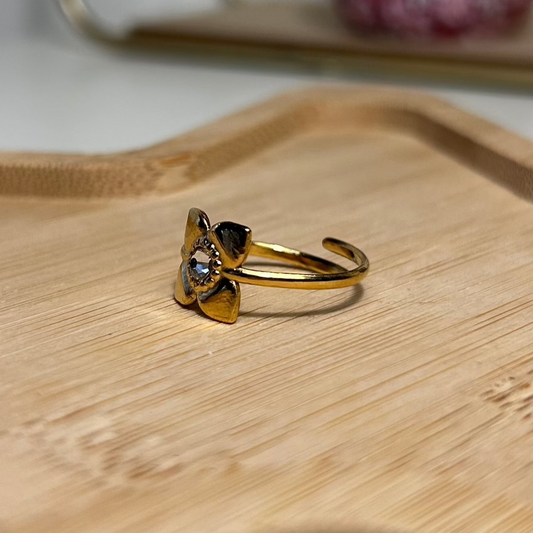 Bague "TAMAYA" Dorée en Forme de Trèfle – Bague Ajustable en Acier Inoxydable Hypoallergénique