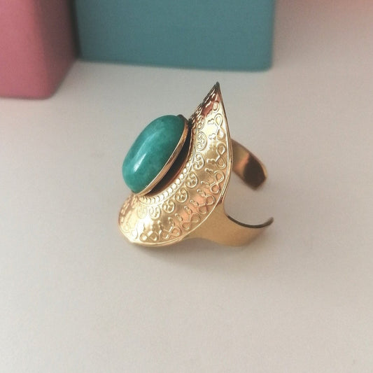 Bague "AZUR" dorée avec pierre turquoise – Acier inoxydable ajustable