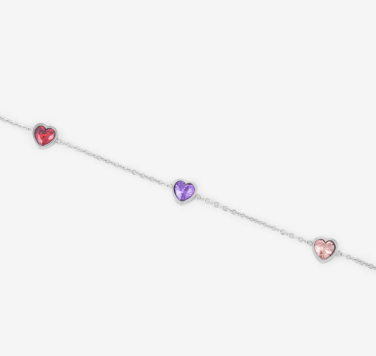 Bracelet "BELLA" argenté – Cœurs colorés, acier inoxydable