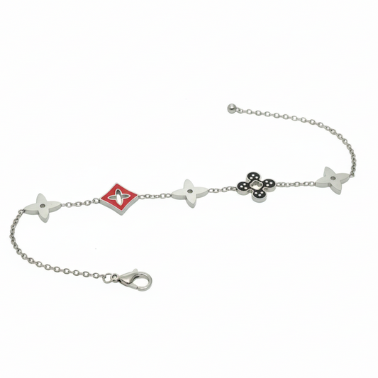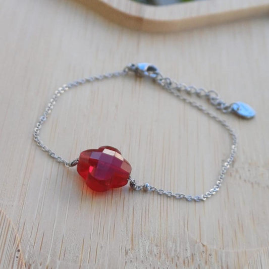 Bracelet trèfles argenté "DAME DE TRÈFLE" – Bijou femme acier inoxydable rouge et noir
