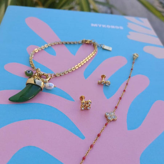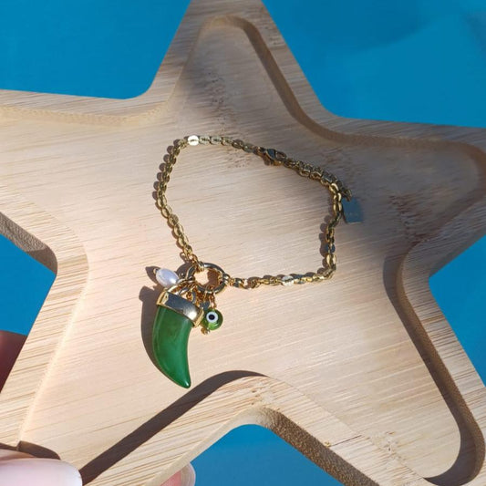 Bracelet "CHEYENNE" Vert avec Breloques en Acier Inoxydable – Tendance