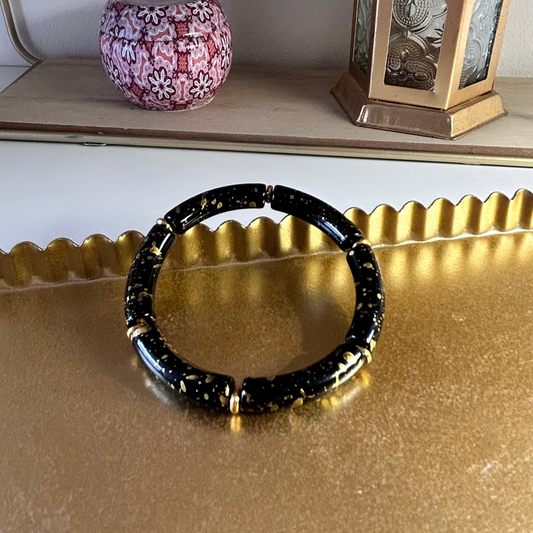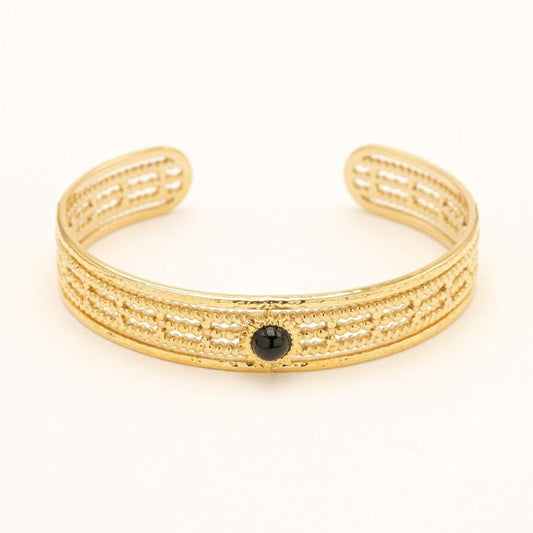 Jonc "BLACK MYSTIC" doré femme – Bracelet avec pierre noire, acier inoxydable, tendance 2025