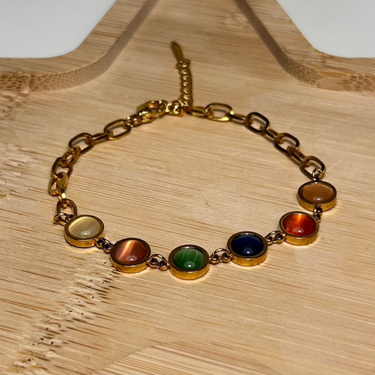 Bracelet LINA doré – Pierres multicolores en acier inoxydable