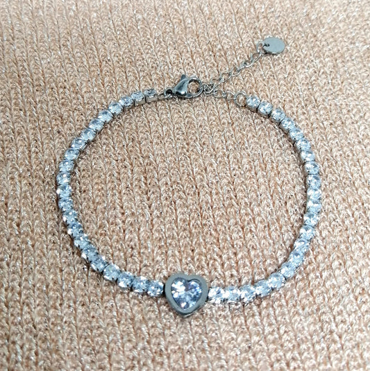 Bracelet "SARAH" – Acier inoxydable argenté & zircons brillants