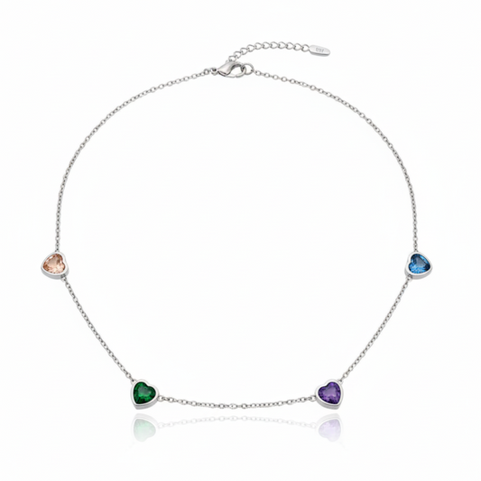 Collier "BELLA" argenté avec cœurs multicolores – Acier inoxydable