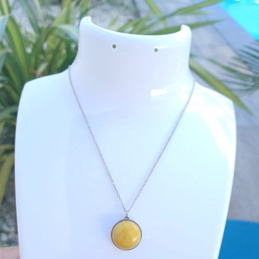 Collier "ÉCLAT JAUNE" argenté – Bijou femme tendance avec pierre jaune en acier inoxydable