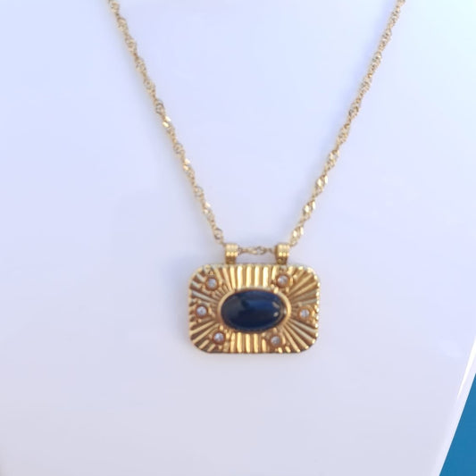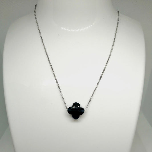 Collier "MONICA" argenté avec pendentif bleu marine ou noir – Bijou en acier inoxydable