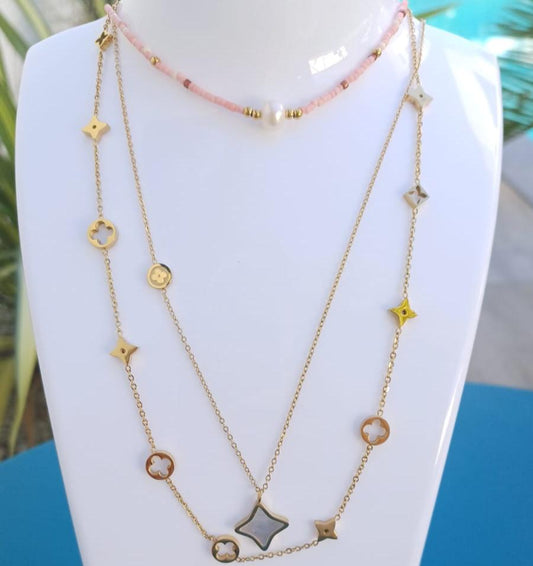 Collier "GLORIA" doré avec pierre nacre – Élégant, chic et résistant