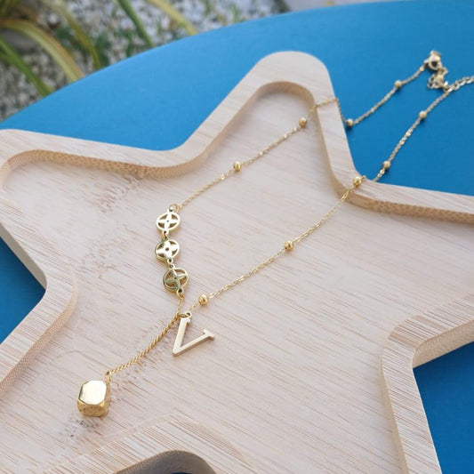 Collier VIOLETTA en Y avec pendentif lettre V – Acier inoxydable gold