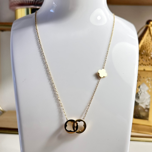 Collier MÉLINA – Deux trèfles entrelacés en acier inoxydable doré