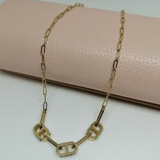 Collier "TRIO" doré ou argenté – Bijou femme maille marine avec strass en acier inoxydable