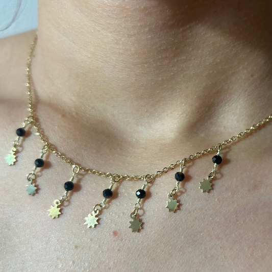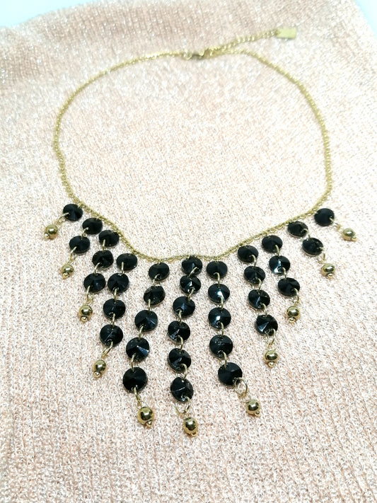 Collier "KIM" doré avec pampilles et pierres noires – Acier inoxydable